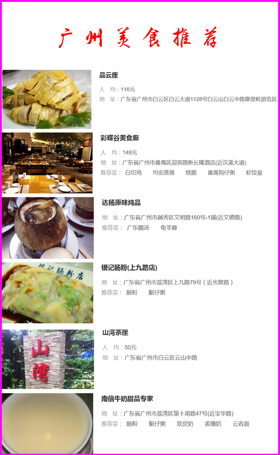 食在廣州”不是虛言。廣州飲食業歷來在全國首屈一指,擁有一大批經歷百年而不衰的老字號和新興名店,傳統和創新的名菜、名點、名小食、名風味食品不勝枚舉。飲茶、喝湯更是廣州一大特色,也成為當地一種獨特的文化。廣州名菜廣州菜是粵菜的主體和代表?;洸说呐胝{方法有二十一種之多。下面小編就給你介紹介紹吧: