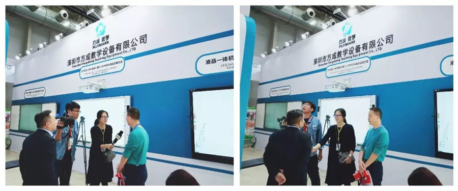 展示會現場,青島電視臺媒體對我們前來體驗的客戶代表進行現場訪問,總經理朱紅東熱情接待并對廣大客戶朋友承諾:方成教學以創新和領先技術在智慧教育產業中穩健發展,邁向技術領先、服務一流的國際化制造商。